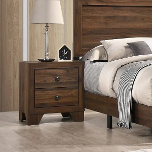 2-Drawer Nightstand, Metal Hardware, Solid Wood Bedside Table, Transitional Style, Brown