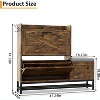 This multi-functional entryway organizer combines a spacious flip-drawer shoe cabinet with a comfortable upholstered bench, blending rustic farmhouse style with practicality for entryways, living rooms, or hallways. Measuring 47.24"L x 9.44"W x 41.33"H, its space-saving slim profile fits narrow spaces perfectly, featuring two ergonomic flip-down drawers that hold up to 16 pairs of shoes for concealed storage, plus a lower open shelf for quick access to daily footwear like sandals and slippers. The integrated 13.34" cushioned bench comes with a removable, washable cover for cozy shoe-changing, while hiding extra storage inside for bags, scarves, or other accessories. Crafted from thick engineered wood and a sturdy metal frame, it boasts an integrated anti-tipping mechanism to ensure long-lasting stability and safety in busy homes. Additionally, it includes a functional tabletop for placing keys and decor, along with side hooks for umbrellas or bags, keeping your entryway neat, organized, and stylish.