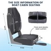 - 【Ultra-Comfortable 2 Pack Boat Seats with Premium Cushion】Enjoy all-day comfort with thick 19"x16.5"elastic seat cushions designed for long fishing trips or cruising. The high back lumbar support reduces strain, while the ergonomic contouring cradles your body. Perfect for bass boat seats, pontoon boats, or small cabins—these folding boat seats ensure a cozy sitting experience even after hours on the water.