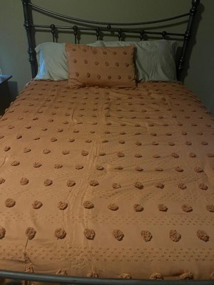 [This review was collected as part of a promotion.] This is a very pretty comforter with a smooth feel and a fun pompom texture. I used it for a teen bedroom and it looks so cute! It’s good quality and fit over our duvet perfectly.