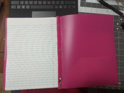 These are the best pocket folders for school. They are plastic which makes them sturdy. They do not bend easily and cannot rip like a paper folder. The prong fasteners work great.
