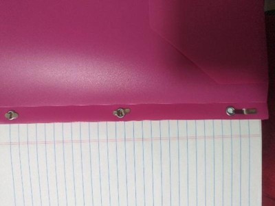 2 Pocket Plastic Folder with Prong Fasteners Pink - Yoobi™: Stationery, 3 Hole Punched, 100 Sheet Capacity, Internal Pockets