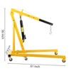 2-Ton Folding Engine Hoist with Telescoping BoomProduct Description:Transform your automotive repair capabilities with this professional-grade 2-ton folding engine hoist. Engineered for heavy-duty performance in garage and workshop environments, this cherry picker combines robust steel construction with innovative folding technology for both powerful lifting and convenient storage. Featuring a telescoping boom with four adjustable positions, six heavy-duty caster wheels for superior mobility, and a complete accessory package including hitch and storage stand, this hydraulic shop crane delivers professional results for mechanics and serious DIY enthusiasts.Key Features:Heavy-Duty 4400 lb Lifting CapacityExperience exceptional lifting power with this 2-ton (4400 lb) capacity hydraulic hoist, designed to handle engines, transmissions, and other heavy automotive components with confidence. The professional-grade hydraulic system provides smooth, controlled lifting and lowering operations, making it ideal for engine removal, installation, and various industrial lifting applications.Robust Steel Construction & Anti-Corrosion FinishBuilt with high-strength steel components and reinforced structural bracing, this hoist maintains absolute integrity under maximum loads. The smooth, glossy anti-rust coating provides superior protection against corrosion, oil stains, and workshop chemicals, ensuring long-term durability and easy cleaning for maintained professional appearance.Adaptable Telescoping Boom & Folding DesignMaximize versatility with four adjustable boom positions offering capacities from 0.5 to 2 tons to match various lifting requirements. The innovative folding design allows the boom and base to collapse into a compact configuration, reducing storage space requirements by up to 70% when not in use—perfect for workshops with limited space.Enhanced Mobility with Six Caster WheelsNavigate tight workshop spaces effortlessly with six heavy-duty metal casters, including four 360° swivel wheels for superior maneuverability. The reinforced wheel construction ensures smooth rolling over concrete floors and uneven surfaces while supporting heavy loads without deformation, providing exceptional control during positioning.Complete Professional Accessory PackageIncludes vital accessories for immediate operation: engine hitch attachment for secure lifting, dedicated storage stand for organized component placement, and heavy-duty hydraulic ram with precision control valve. The comprehensive package ensures you have everything needed for professional automotive repairs right out of the box.Technical Specifications:Lifting Capacity: 2 Tons (4400 lbs)Boom Positions: 4 adjustable telescoping settingsConstruction: High-strength steel with anti-rust coatingMobility: 6 heavy-duty casters (4×360° swivel)Special Features: Folding boom and base designIncluded Accessories: Hitch, storage standPrimary Use: Automotive engine repair and heavy liftingStorage: Space-saving folded configuration