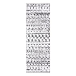 2 x 6 ft Polyester Black Rectangular Dining Room Laundry Bathroom Kitchen Geometric Stripped Print Modern Machine Washable Runner Rug
