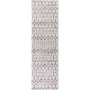 In shades of ivory, pink, blue, orange, this Moroccan trellis is Inspired by timeless vintage designs and crafted with the softest polypropylene available. This beautiful linear pattern is made modern in a bright ivory yarn power loomed for durability. The simple geometric stripes, triangle and diamond motifs will give a fresh look to any room.