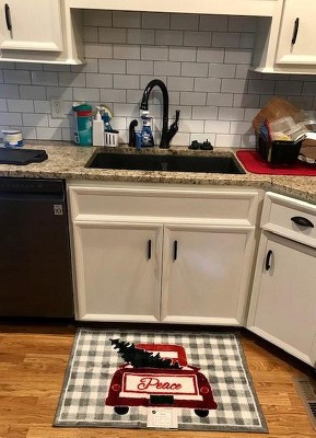I am in love with this rug! The colors are vibrant and it is the perfect size to fit by my kitchen sink. So festive and matches my other holiday decor - I can't wait to start decorating!