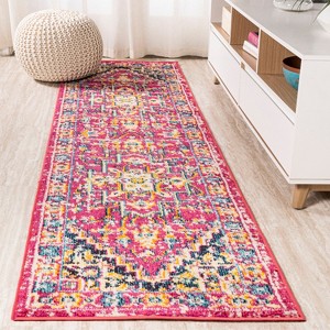 JONATHAN Y Brooklyn Geometric Medallion Red/Pink 2 ft. x 8 ft. Runner Rug, Non-Shedding, Easy-Clean, Durable Synthetic Fibers