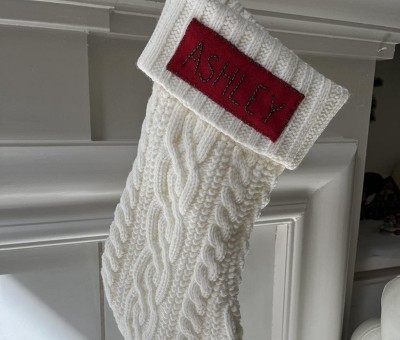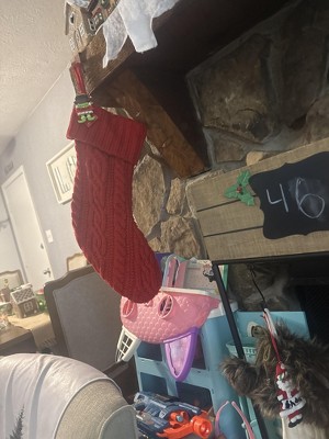 The 20 inch Cable Knit Christmas Stocking from the Wondershop is in a cream color with a silky polyester interior. This is a large stocking that I would consider to be more of a decoration due to the cable knit and that it is spot clean only if you need to clean it. However, I did really like that there is an inside lining to the stocking. I think this really helps the stocking keep its shape. Overall, this stocking looks really nice hanging on my brick fireplace. I will need to get 2 more of these for a full display this holiday season.