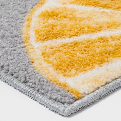 Refresh your kitchen floor with this Lemon Slices Kitchen Rug from Threshold™. Bright and cheery, this lemon slices kitchen rug will instantly freshen up any space wherever it's placed. Incredibly comfortable to stand on, this tufted rug provides cushioned comfort and a decorative appeal. The medium-pile design makes for easy maintenance, while the non-skid latex backing helps to keep the rug securely in place, making your cooking or washing experience both enjoyable and comfortable.