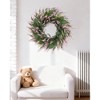 Realistic Lavender Design: Made of high-quality, fade-resistant PVC, this wreath mimics the delicate texture and soft pink hue of fresh lavender, with lush green leaves and stems for a lifelike appearance that looks fresh and vibrant year-round.