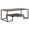 - Design: Knock-down (KD) coffee table with a metal frame, powder coating, rustic finish, and industrial style.