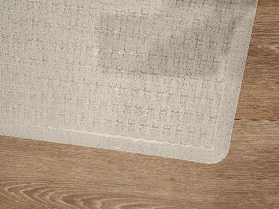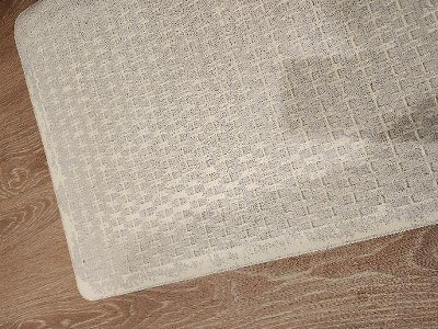 A: Hi Guest - Thank yu for the inquiry. The Figmint Elite Thick Comfort Mat has a flat, smooth-feeling top surface rather than a heavily textured or grooved one. It’s made with stain-resistant PVC foam with a flat pile height, which makes the top flat/level and easy to wipe clean. Happy shopping! - Kris