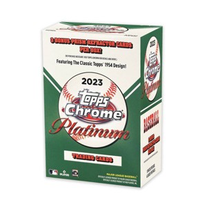 Topps presents 2023 Chrome Platinum Baseball Trading Cards. This box includes 3 Bonus Prism Refractor Cards Per Box! Featuring The Classic Topps 1954 Design! Each box includes 32 cards total with 8 Packs per box and 4 cards per pack.