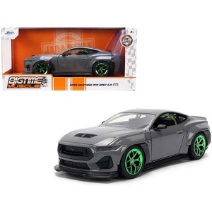 Brand new 1/24 scale diecast car model of 2024 Ford Mustang RTR Gray with Green Wheels "Bigtime Muscle" Series die cast model car by Jada.