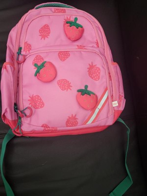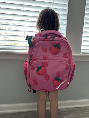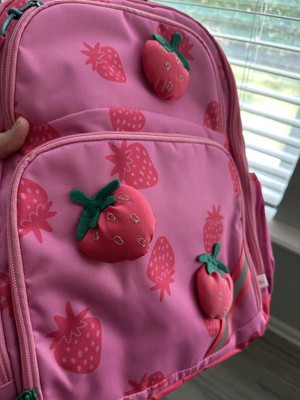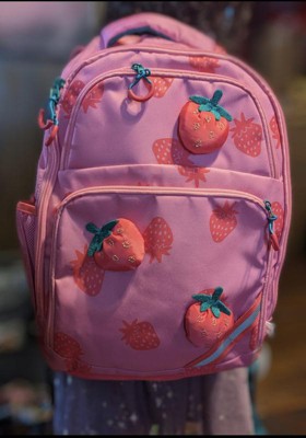 My daughter loves this backpack! The strawberry design is so cute and fun. It’s the perfect size for her, not too big or too small, and holds all her school supplies, lunchbox, and even her water bottle. The straps are comfy, adjustable and it feels strong and well made. Great quality and super cute!
