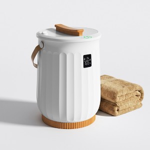 Upgrade everyday routines with this large capacity towel warmer designed for comfort and convenience. Featuring a sleek, modern silhouette with natural wood accents, it blends seamlessly into bathrooms, bedrooms, or spa like spaces. The ultra large interior easily accommodates bath towels, robes, or blankets, while the built in LED display clearly shows heating time and temperature. Simple button controls allow you to select preset warming cycles, delivering evenly warmed fabrics when you need them. A built in fragrance pad holder adds an extra layer of comfort by allowing optional fragrance use during warming.