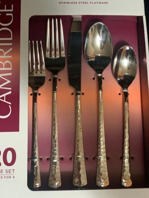 20pc Raegan Hammered Mirror Flatware Set - Cambridge Silversmiths: Silverware Set, Service for 4, Forks Spoons Knives