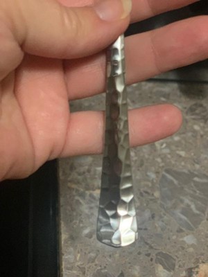 [This review was collected as part of a promotion.] Our kids kept throwing away silverware so we were always getting plastic ware instead. Happened upon these and took a chance. I like the hammered look of them, looks really pretty and could dress up the table when wanting to be fancy. They have a very nice weight to them. Not to heavy and all one piece so no need to worry about rusting or the handle breaking off.
