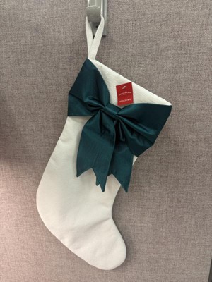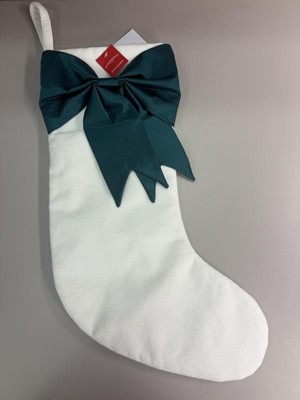 Wondershop™ 21" Christmas White Stocking with 3D Green Bow