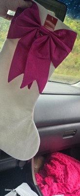 Get into the holiday spirit by decorating your home with this Stocking with 3D Bow Decor from Wondershop™. Made of polyester, this white Christmas stocking is adorned with a large colorful 3D bow decor for a cute look. Plus, it comes with a built-in loop for easy hanging on the fireplace mantels, stair railings or your Christmas tree.
