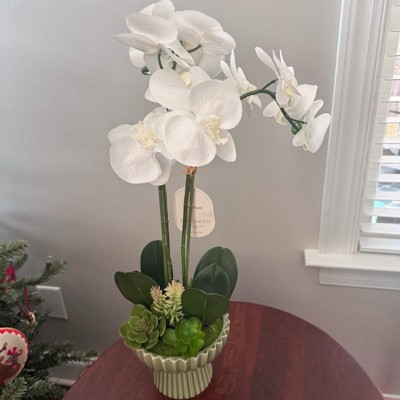 [This review was collected as part of a promotion.] The 22” elevated orchid plant by Threshold is incredibly realistic. It’s delicate and lush greenery have really added a beautiful touch of elegance to my living space. I love the succulent accents at the base, and the white flowers are so vibrant. The elevated design make it stand out beautifully. This is perfect if you want the look of fresh orchids without all the maintenance!