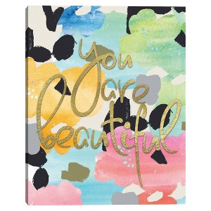 Everyone encounters a rough patch in life and, it's during those times that we look to others for inspiration. Nikki Chu has created a spirited Canvas Art Print, with abstract blossoms in multiple colors and the phrase You Are Beautiful in gold cursive font. Give the gift of love and inspiration with this beautiful wall embellishment.