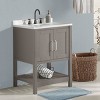 - • Free standing vanity is seated on the floor providing a functional design that doesn't overwhelm the space; Distance from floor to bottom shelf: 3 1/2"