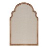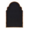 Organize your home in style with a fabric pinboard that has a simplistic, traditional design. The Hogan pinboard takes inspiration from antique Moroccan design, with a chic, scalloped edge that culminates with a unique arched peak. This classic pinboard has a lightweight wooden construction with a high-quality, soft fabric pinning surface for all your meaningful keepsakes. Use this decorative pinboard for all your daily reminders, photos, invitations, or report cards. As a chic, rustic accent, the traditional Hogan bulletin board looks excellent in any farmhouse-inspired entryway, living room, bedroom, mudroom, or kitchen. It also looks fantastic in a family command center to post reminders, daily chores, or dinner schedules, too. Kickstart your creativity in a craft room or creative space by using this accent as a memory board or vision board! The Hogan arched pinboard also hangs in a matter of seconds with convenient metal D-ring hangers attached to the back of the frame.