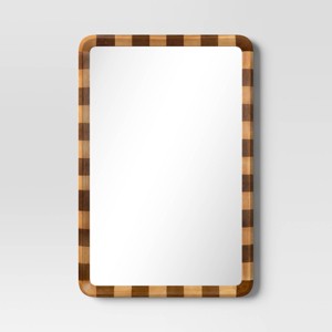 Elevate your interiors with this Striped Wall Mirror from Threshold™. This wall mirror features a wooden frame with striped design that makes it an eye-catching focal point on any wall. Easy to mount on the wall using pegs or screws, this striped mirror offers the flexibility to hang it vertically or horizontally for a stunning display.