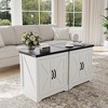 The table's distinctive sliding barn door front adds an authentic rustic character, creating a focal point that enhances any room with warmth and traditional elegance. Crafted from high-quality engineered wood with a durable antique white finish, the piece exhibits the visual texture of natural wood grain while providing robust durability that withstands daily use.