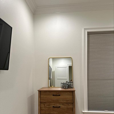 This was a high-quality very sturdy mirror. I returned it because it was a little too big for my entryway, which is where I was going to use it for. However, if I was replacing the mirror in my bathroom vanity, this would’ve been perfect. Seems more like a bathroom mirror versus an entryway mirror because it is very sturdy and thick.