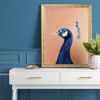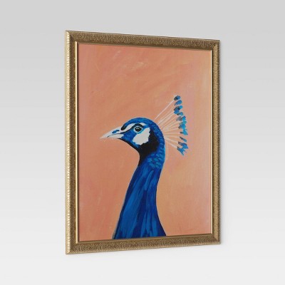 "Peacock" is a beautiful example of artist Pamela Mungers sense of color, style and her own very personal approach to her painting. The profile image of "Peacock" is a bold statement of color and beauty that will brighten up both your walls, as well as your home. It is framed in the Opalhouse styfe of decorative and ornate.