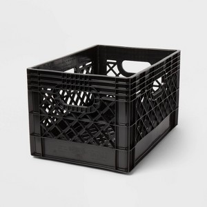 24qt Heavy Duty Stackable Storage Crate - Brightroom™: Black Plastic Utility Bin with Built-In Handles