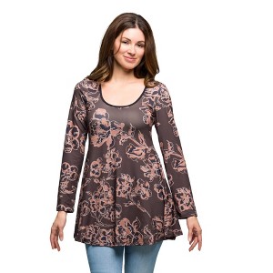 24seven Comfort Apparel Brown Floral Print Long Sleeve Tunic Top - 1 of 3