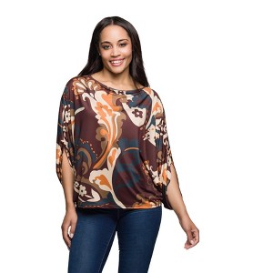 24seven Comfort Apparel Brown Paisley Print Dolman Sleeve Top - 1 of 3