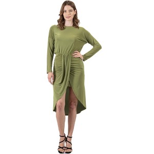 Womens Round Neck Dolman Sleeve Knee Length Draped Tulip Skirt A-Line Dress - 24seven Comfort Apparel™ - 1 of 4