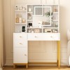 - 【?️ Ultra-Organized Storage】3 drawers + 8 open shelves + hidden cabinet + recessed desktop. Holds cosmetics, jewelry, tools. Clear acrylic top displays items instantly. Anti-tip safety design.