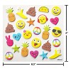 - Design features a variety of cute and fun Emoji Icons and are puffy for a 3D effect. Stickers range in size.