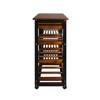 28" Solid Wood Rolling Kitchen Cart with Wine Rack and Drawer Dark Brown - Flora Home: Mobile Island Trolley, 6 Shelves, Locking Wheels