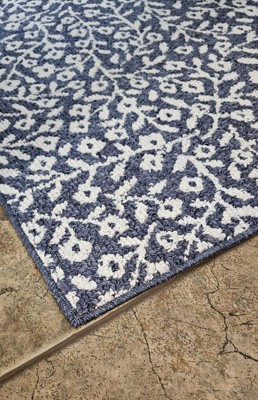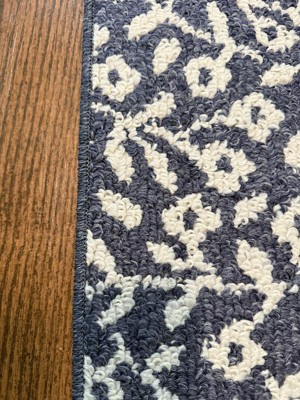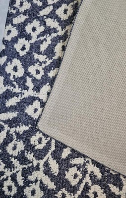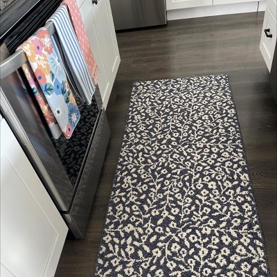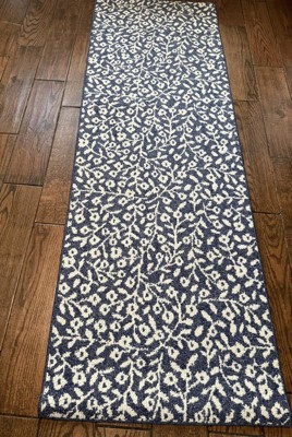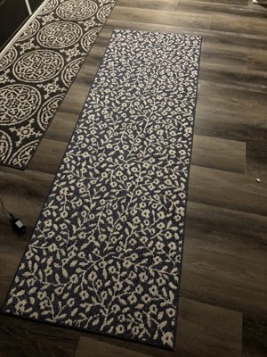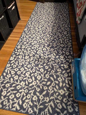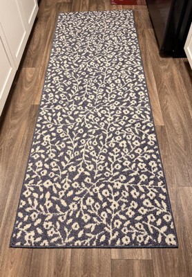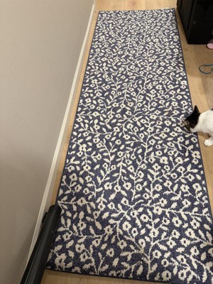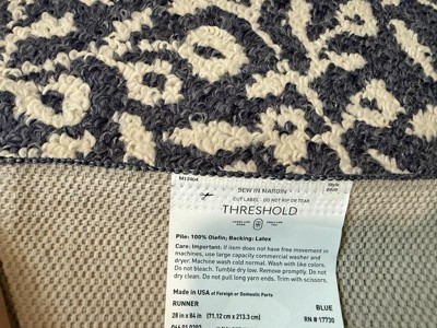 Dress up any space in your home in charming style with this Botanical Washable Runner Rug from Threshold™. This washable runner features an allover leaves pattern in an indigo hue with finished edges for a beautiful look that will coordinate easily with a variety of decor aesthetics. The olefin construction provides soft underfoot comfort, while latex backing helps to keep it in place. Plus, the low pile height makes it super easy to clean, making it highly versatile for high-traffic areas like your kitchen, living room or entryway.