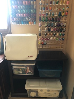 I use it in my sewing room to hold extra embroidery machine and products I use. Nice looking. May need to secure to wall if a lot of heavy on it. It matches closely to other furnishings in room. Perfect for what I need.