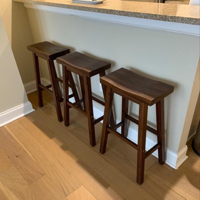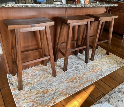 Great sturdy good looking stools, if you get a perfect one. I ordered two, one had a very noticeable chipped gouge along the seat edge, and a small visible screw hole in the wood; the second stool wobbled with uneven legs and you could not switch/alternate legs due to the assembly. Very good deal, but definitely make sure you get a perfect stool.
