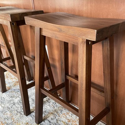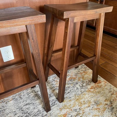 Bring attractive rustic style to your kitchen island with the Sonoma Saddle Counter or Bar Height Wood Stools. Our Sonoma saddle stools are made from solid acacia wood. This environmentally friendly wood is prized for its hardiness and attractive grain. We use a multistep wire-brush finish which enhances the natural beauty of the wood even more. It’s built for long-lasting stability and comfort, thanks to a wide, curved saddle seat and built-in footrests. These stools will bring both style and comfort to your kitchen or bar area, making them the perfect addition for any space.