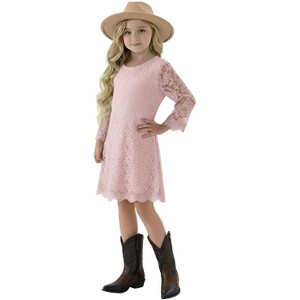 2Bunnies Girls' 12M-12yr Boho Rustic Garden Lace Sleeve Flower Girl Dress - 1 of 4
