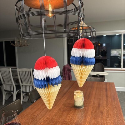 2ct Honeycomb Hanging Ice Cream Cones Dangler Party Decorations Red White and Blue - Sun Squad™