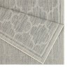 This 2'7" x 7'3" indoor/outdoor area rug in silver has a trellis pattern. Crafted from polypropylene yarn, it offers elegance, kid and pet-friendly features, and stain resistance for high-traffic areas.
