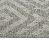 This 2x3 ft indoor/outdoor throw rug features geometric texture. Offers UV-stabilization, fade and heat resistance, and stain resistance. Suitable for residential use in various settings.