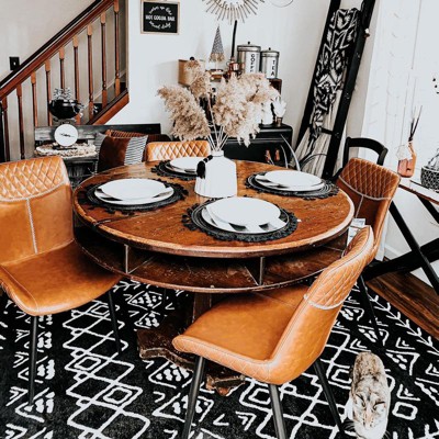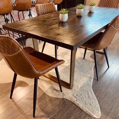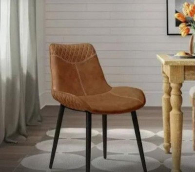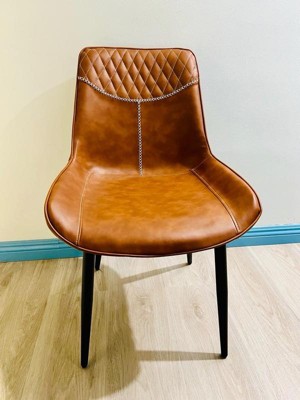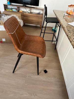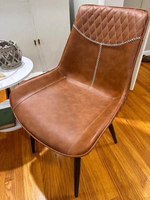 Linon 2pc Edler Quilt Stitch Scooped Seat Dining Chairs Brown: Faux Leather, Metal Frame, Foam Fill