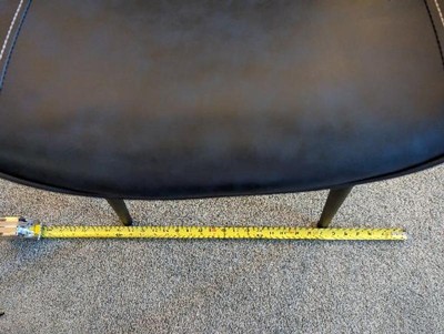 So beautiful! The color is perfect! Super sturdy! Love the black legs and the stitching. They have a wide seat too which I love. I don’t like to feel like I have to tuck into it. So beautiful and can’t beat the price. Very high quality and look super expensive