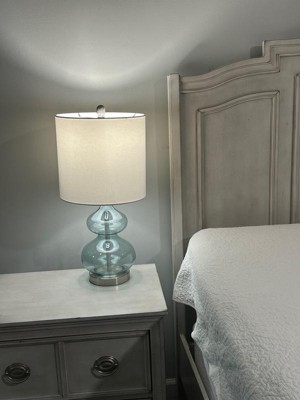 [This review was collected as part of a promotion.] I love the elegance of these glass lamps. They are perfect with the color scape in my bedroom. The blue glass reminds me of calmness and the ocean. If I could, I would add seashells inside of the glass. I wish they had an usb charger, but they are gorgeous the way they are.